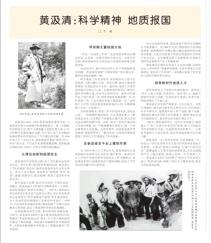 团结报发表于翔教授文章——黄汲清:科学精神 地质报国