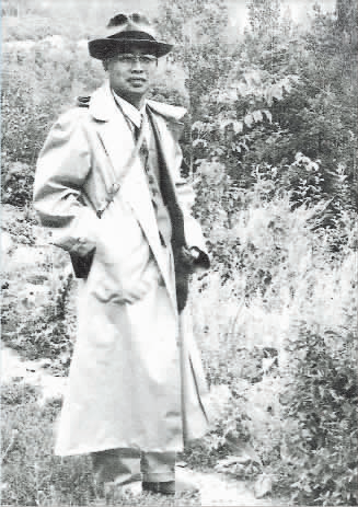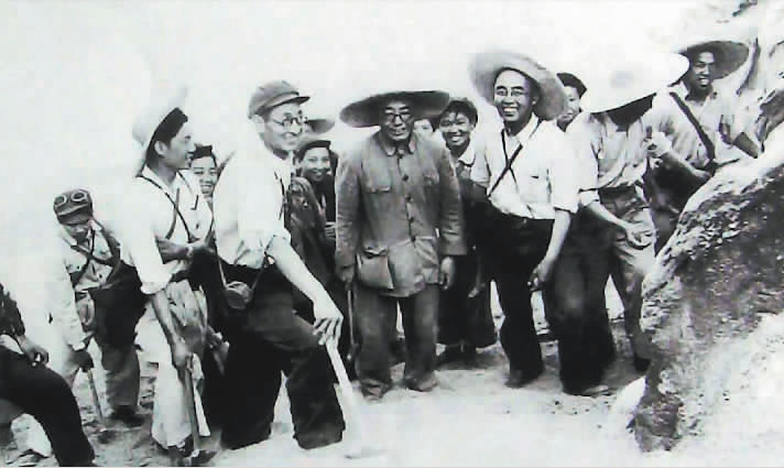 一九五五年六月,地质部新疆石油普查大队在野外考察石油地质(中间三人左起靳豫贵、谢家荣、黄汲清)