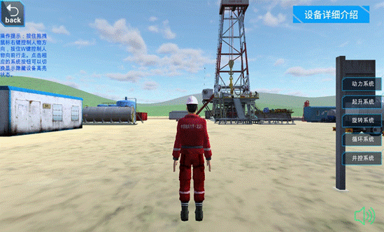 可以拉近拉远视角观看,点击设备可以高亮显示并出现设备介绍,从而使学生能够认识不同的钻井设备