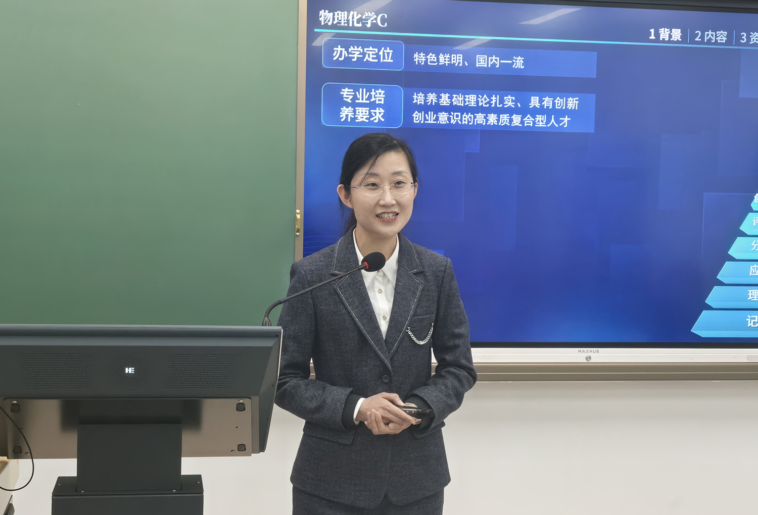 以所授课程“物理化学C”为例,杨威副教授详细分享了融合知识图谱与AI技术的智慧教学实践探索。针对课程中学生学习兴趣不足、考前突击现象普遍、课程趣味性与探究性欠缺等痛点,她立足学校定位与专业需求,启动了全方位的教学改革。
