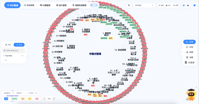 知识图谱是智慧课程的“骨架”,它将零散的知识点有机串联,形成可视化的知识网络。学生可以清晰看到知识点之间的逻辑关系,教师可以精准把握教学重点。