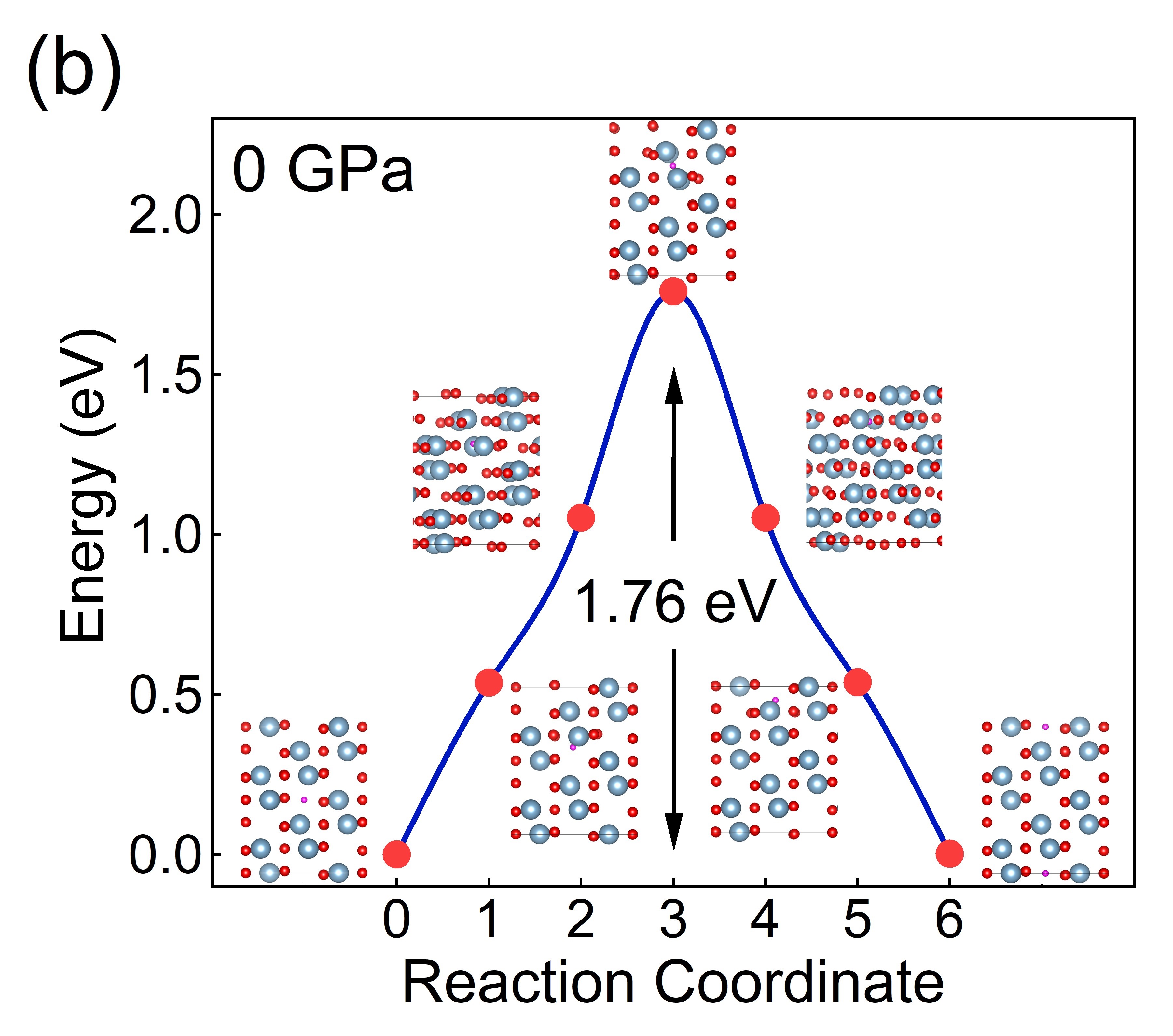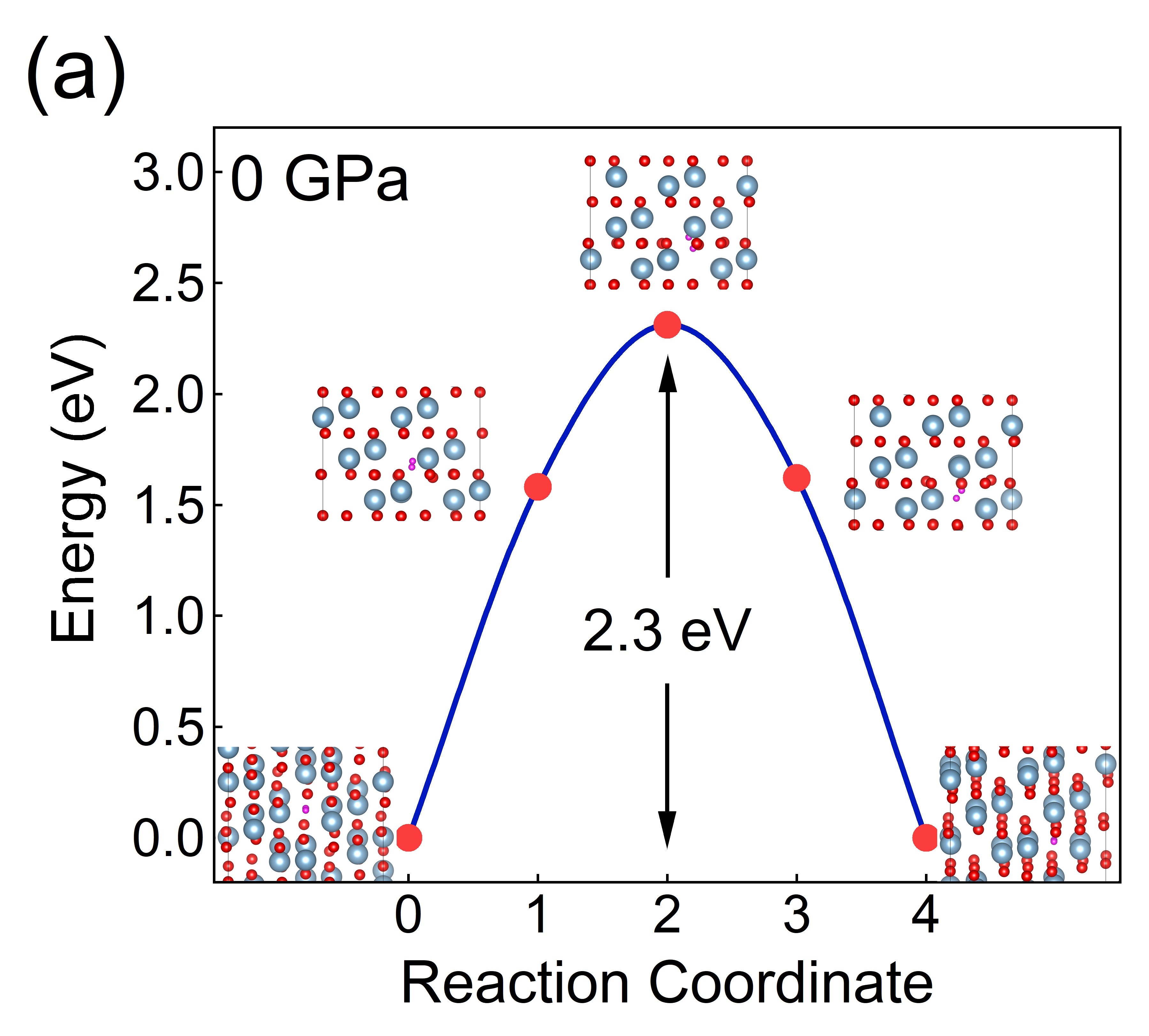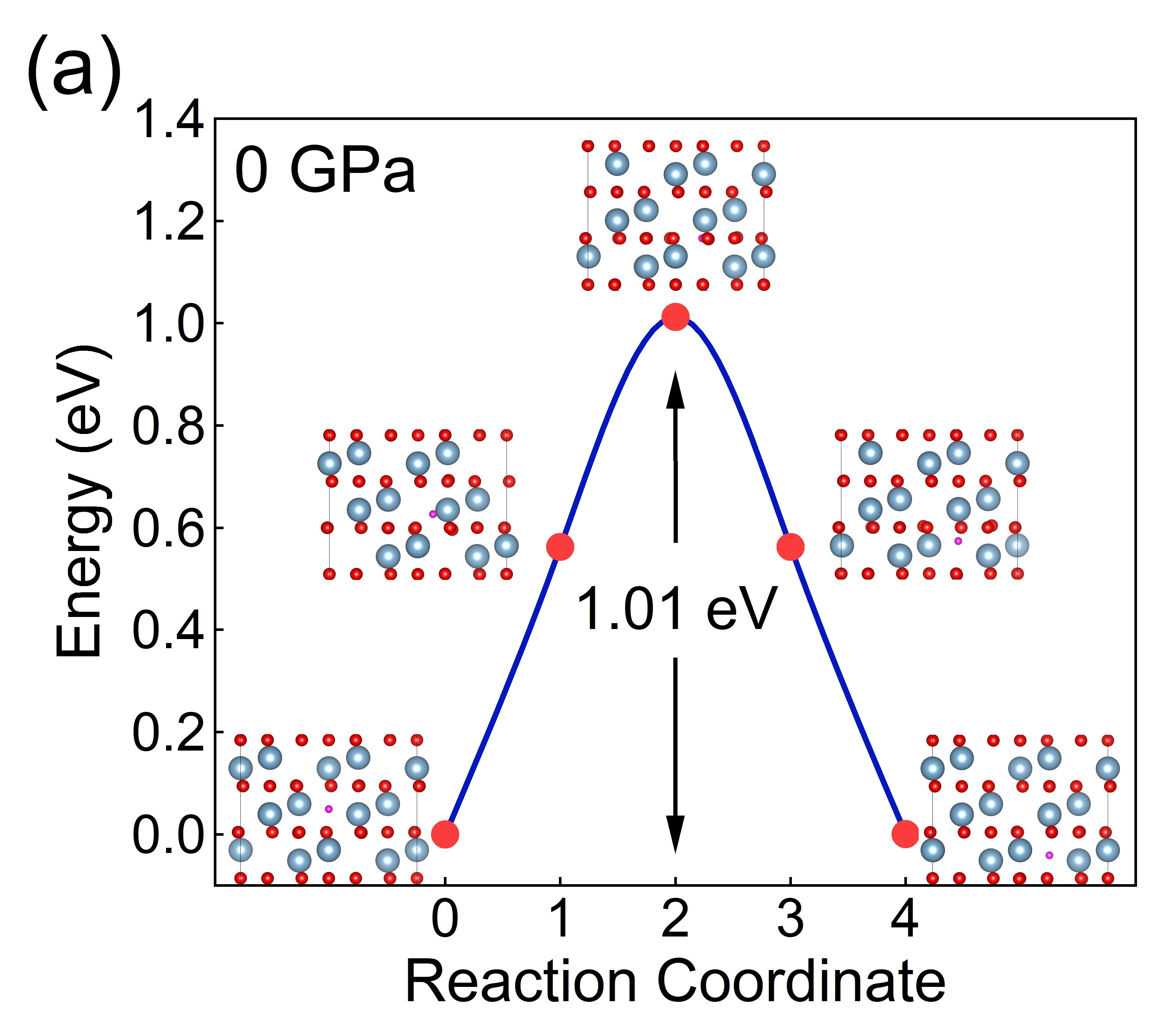 中国地质大学(北京)李林副教授研究团队,运用第一性原理理论结合CI-NEB方法,系统研究压力对刚玉中氢扩散行为的影响。研究的计算工作基于密度泛函理论(DFT),通过维也纳从头算模拟软件包(VASP)执行。研究采用了PBE-GGA交换关联泛函和PAW赝势方法。模拟体系为一个2×2×1的刚玉超晶胞,包含72个氧原子和48个铝原子。为精确获得迁移能垒,研究使用了CI-NEB方法来定位初始态和末态之间能量路径上的鞍点。为了计算氢在不同温度和压力下的扩散系数,研究通过第一性原理分子动力学(AIMD)模拟来确定氢的尝试频率。取得以下主要认识: