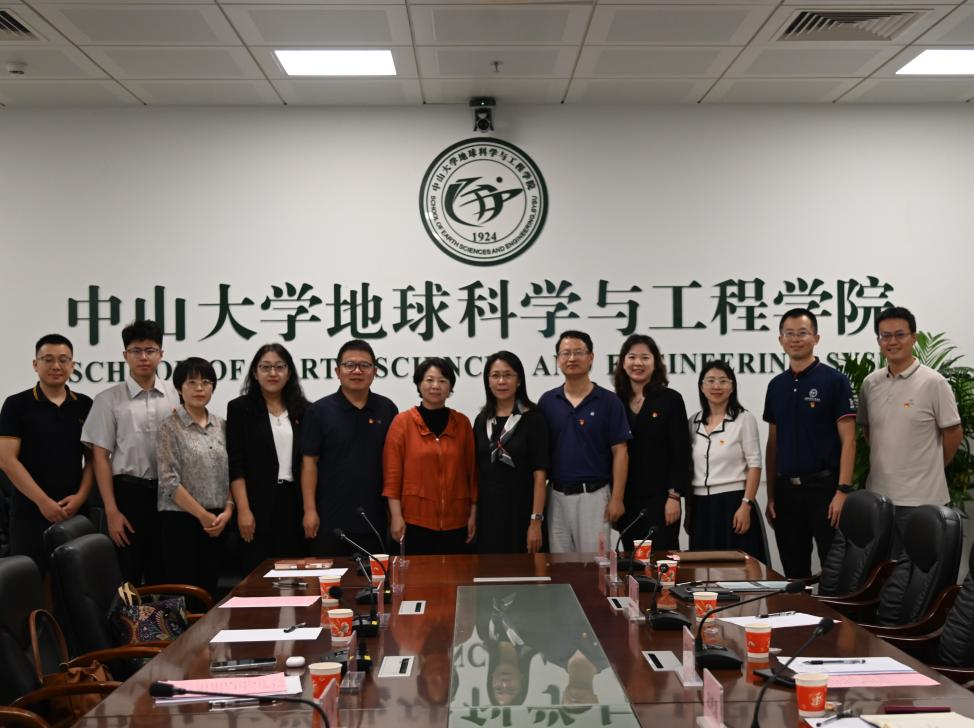 中山大学地球科学与工程学院党委书记孔晓慧、院长王伟涛、党委副书记徐永怡从党建引领学院发展、学院基本情况及学科发展、学生党建工作等方面进行了深入交流。