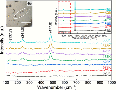 图4. 实验析出物的原位拉曼光谱分析。谱图清晰显示了位于138 cm−1、241 cm−1和478 cm−1的特征峰,分别对应于固体氯化铅(PbCl2)的晶格振动、水溶液中[PbCl3]−的对称伸缩振动以及水合金属离子(M-O)的振动。这一结果证实,沥青携带的金属(Pb, Zn)在冷却过程中以卤化物的形式从流体中卸载。