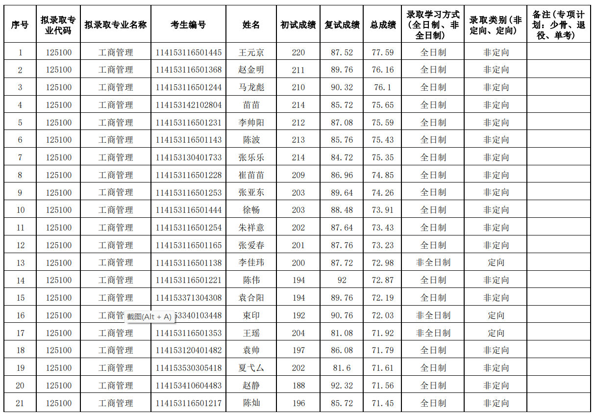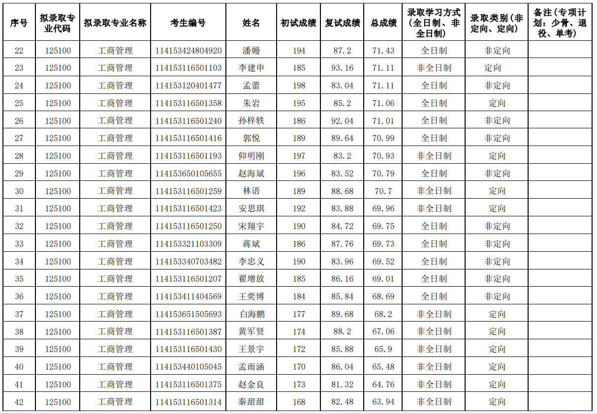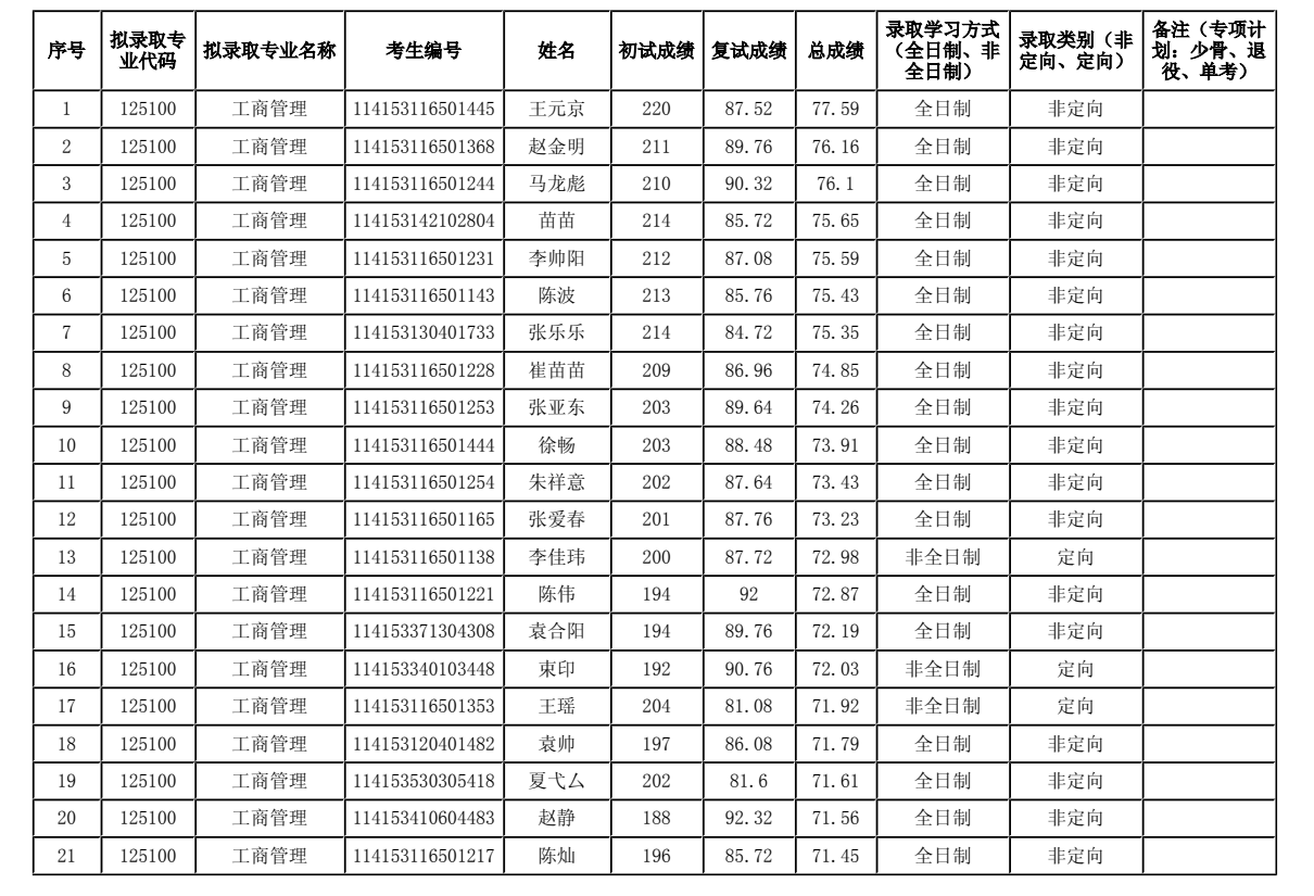 2023年中国地质大学(北京)经济管理学院工商管理专硕(MBA)一志愿拟录取名单