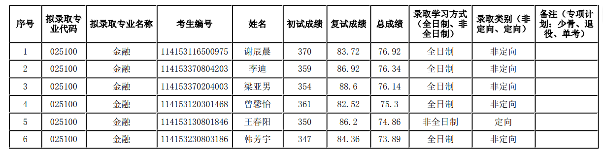 2023年中国地质大学(北京)经济管理学院金融硕士(025100)一志愿拟录取名单
