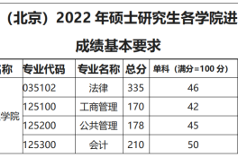 2022年硕士研究生各学院进入复试的初试成绩基本要求