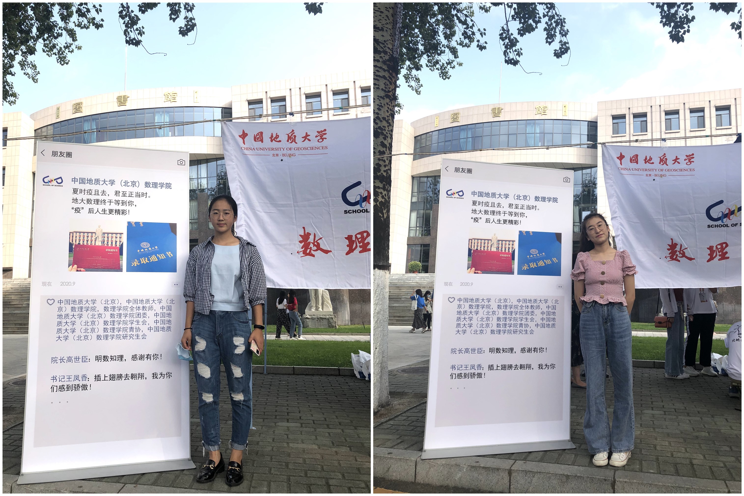 进入注册报到处后,学院精心设计的地大数理“迎新朋友圈”展板让人眼前一亮。“夏时疫且去,君至正当时”“明数知理,感谢有你!”“插上翅膀去翱翔,我为你们感到骄傲!”是为每一位同学送去真心而热烈的欢迎与祝福。新同学纷纷在展板前驻足观看,与“官方朋友圈”留下珍贵的入学第一照,期待着毕业时自己的成长与蜕变。