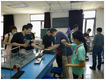 2021年6月1日下午,物理实验中心承办的“童心向党,快乐成长”六一科技开放日活动成功举行。自然文化研究院、数理学院相关负责人及数理学院部分师生全程参与本次活动。 数理学院王凤香书记为活动致开幕词,祝小朋友们节日快乐,希望小朋友们从小养成懂科学、爱科学、用科学的好习惯,祝愿小朋友们德智体美劳全面发展,健康快乐成长。 开幕式之后,小朋友们在讲解教师及志愿者的带领下参观文化走廊,学习了物理发展史、科技进展、物理学成果,感受了科学家的精神和文化,并在实验室内开展了多项互动体验,包括显微镜标本观察、燃料电池新能源实验体验,以及全息成像、偏光干涉、磁悬浮、记忆合金、高压放电等光学、热力学、电磁学实验,这些实验现象和教师生动形象的讲解极大地激发了小朋友们的好奇心和求知欲,通过让小朋友们走进科技、触摸科技、感受科技,为小朋友们种下了爱科学、学科学、用科学的种子。活动结束后,物理实验中心还为小朋友准备了精美的书画礼品。