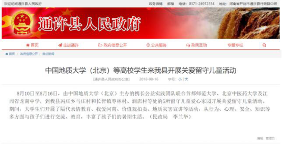 此外,校团委与马克思主义学院协同各学院组织的的校、院两级特色实践项目进展也十分顺利。其中,大山里的蒲公英——赴青海省海东市精准扶贫暑期社会实践团100名团员于7月18日至7月31日在青海省海东市10个贫困村开展社会实践,为当地孩子带去知识和关爱,同时开展调研,以求为当地扶贫工作带来帮助;“改革开放四十周年”主题实践团四个分团分赴浙江义乌、浙江舟山、山东青岛及辽宁大连开展主题调研工作,调研改革开放政策给当地经济发展居民生活等方面带来的影响。由地球科学与资源学院、水资源与环境学院负责的“美丽中国”主题社会实践团与由经济管理学院、马克思主义学院负责的“重温红色路,共筑中国情”主题社会实践团也取得了一定成果。