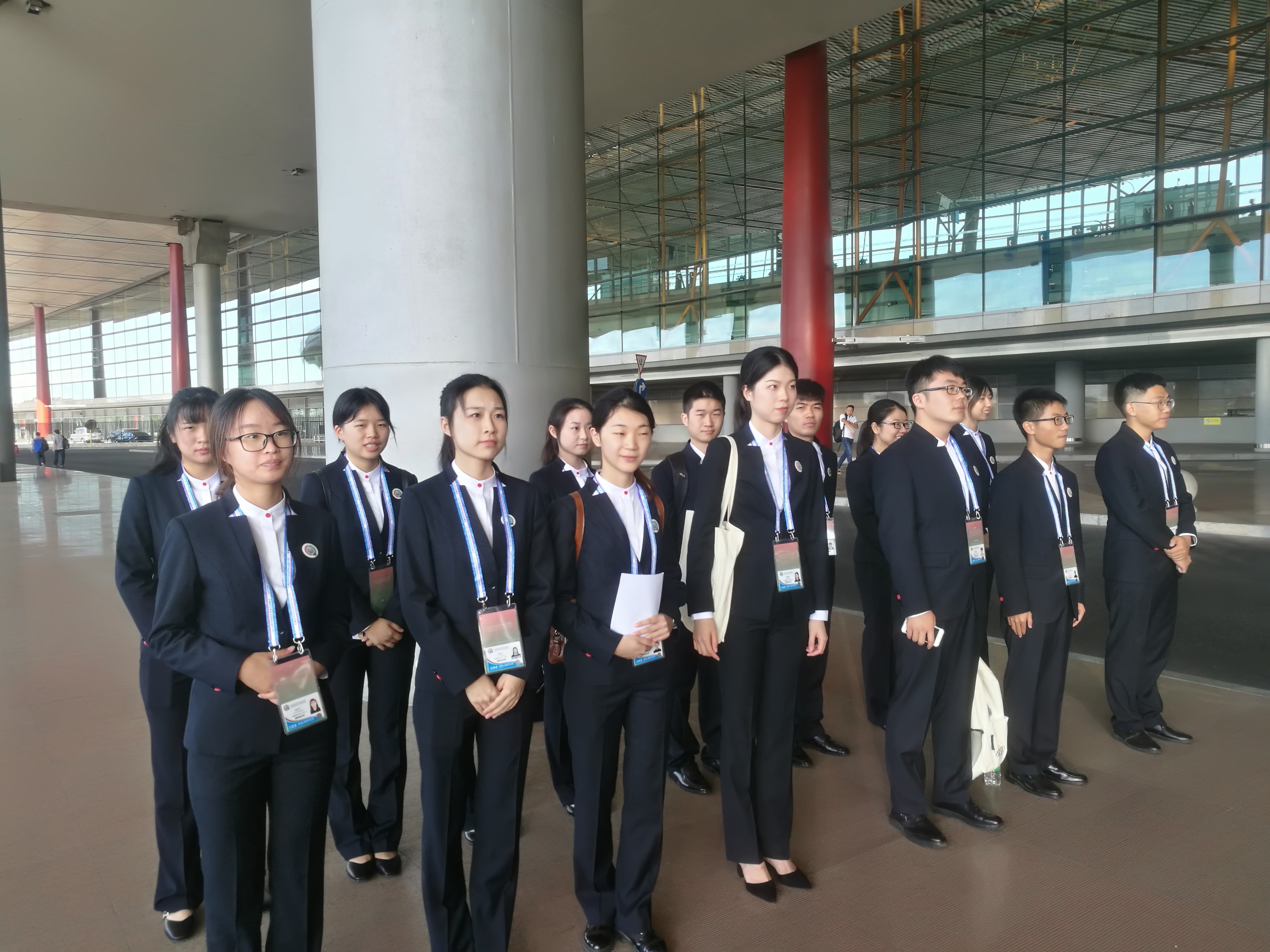 8月29日至9月6日,志愿者正式上岗,每天6:00集合出发,22:00后返回学校。每当有外宾到达机场去往酒店,志愿者随车送外宾去酒店,过程中需要完成与机场和酒店双方面的对接。这时,就需要必要的语言沟通技巧了。为保证高质量地完成本次志愿,有党员同志自觉承担起模范带头作用,为大家编写了礼貌用语,在此后的实践交流中起到了很大作用。