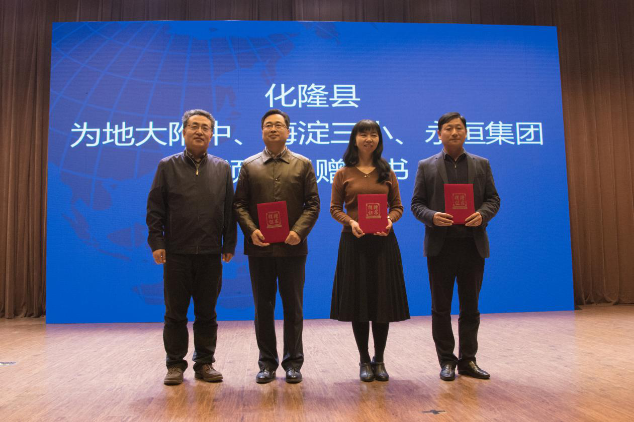 活动期间,化隆县学生代表赠予现场嘉宾哈达。化隆县副县长白浩为永恒集团北京区域执行董事李旭光等嘉宾颁发捐赠证书。