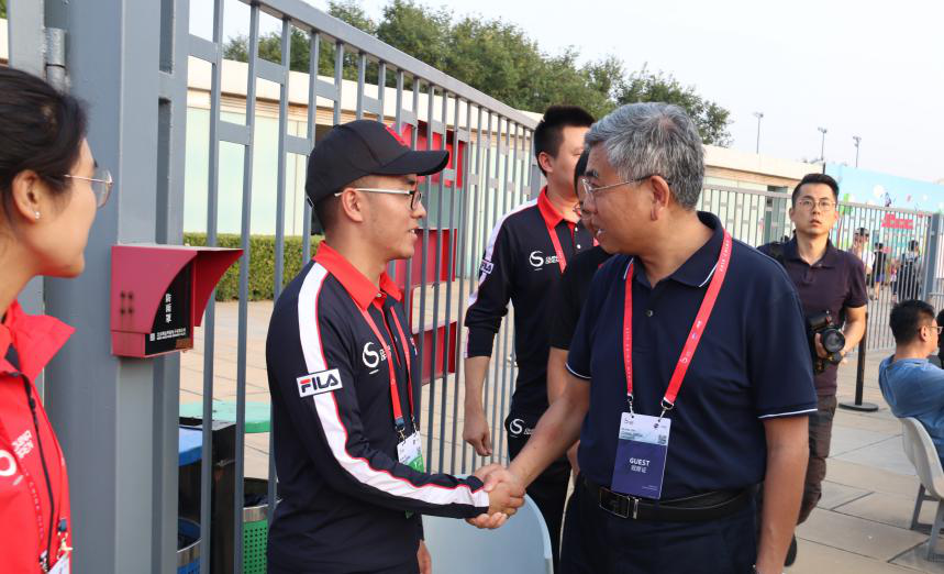 2019年10月2日下午,我校副校长王果胜在团委有关负责同志的陪同下,专程来到国家网球中心慰问我校服务于中国网球公开赛(中网)的志愿者们。慰问期间,王果胜副校长一行对我校志愿者进行了亲切的问候并对我校志愿活动的开展提出了宝贵的意见以及建议。