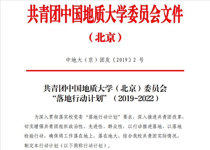 二、共青团中国地质大学(北京)委员会“落地行动计划”发布
