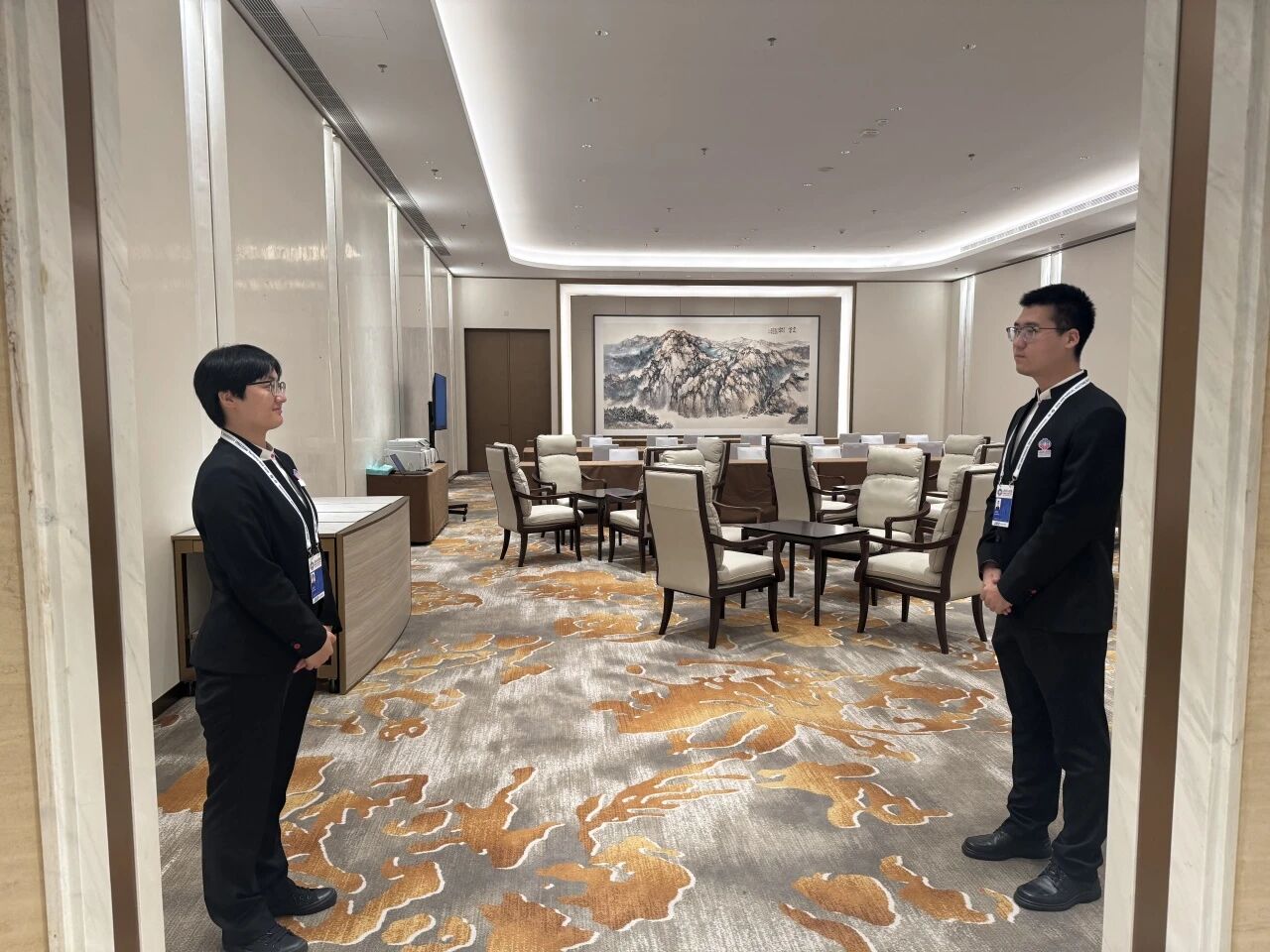 6月22日起,我校山野志愿者正式上岗。41位山野志愿者在理事休息区、餐饮及茶歇区、交流区、酒店咨询台、非遗和老字号展览展售服务区、祈祷室、民间社会组织/非政府组织工作区和会议室(CSO/NGO)7个岗位开展多项服务工作,为亚投行理事年会的顺利开展提供扎实保障。