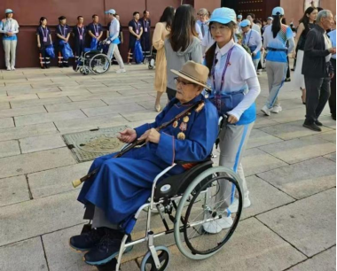 当我推着轮椅,陪伴着那些经历过抗战岁月的老战士们时,一种庄严的使命感油然而生。他们是历史的亲历者和见证者,为他们服务我感到十分荣幸。尽管活动开始后我们需进行隐蔽,无法直接看到阅兵的精彩场面,但我知道我们的坚守和付出同样意义非凡,每一次平稳的摆渡、每一次耐心的解答,都是在以青春之名,向英雄致以最质朴的敬意。