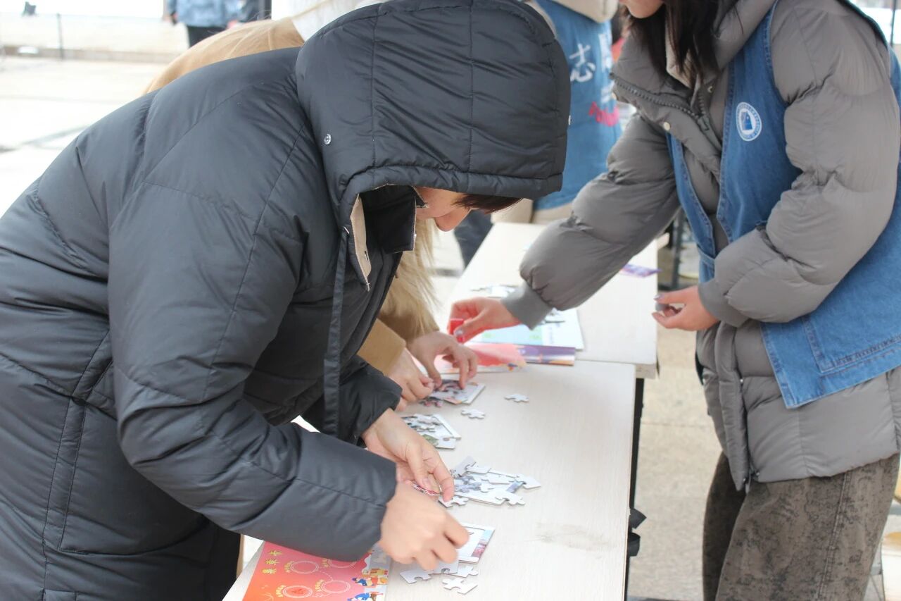 同学们参与有关我校志愿服务精彩瞬间的拼图游戏,获得“野”印章。拼图过程中,志愿者们的身影逐渐清晰——笑容洋溢的脸庞、默默付出的背影,无声诉说着他们的热忱与担当。一张张定格志愿服务高光时刻的拼图被逐一复原,不仅重现了温暖瞬间,更吸引着更多同学主动加入志愿服务的行列,勇于担当与奉献。