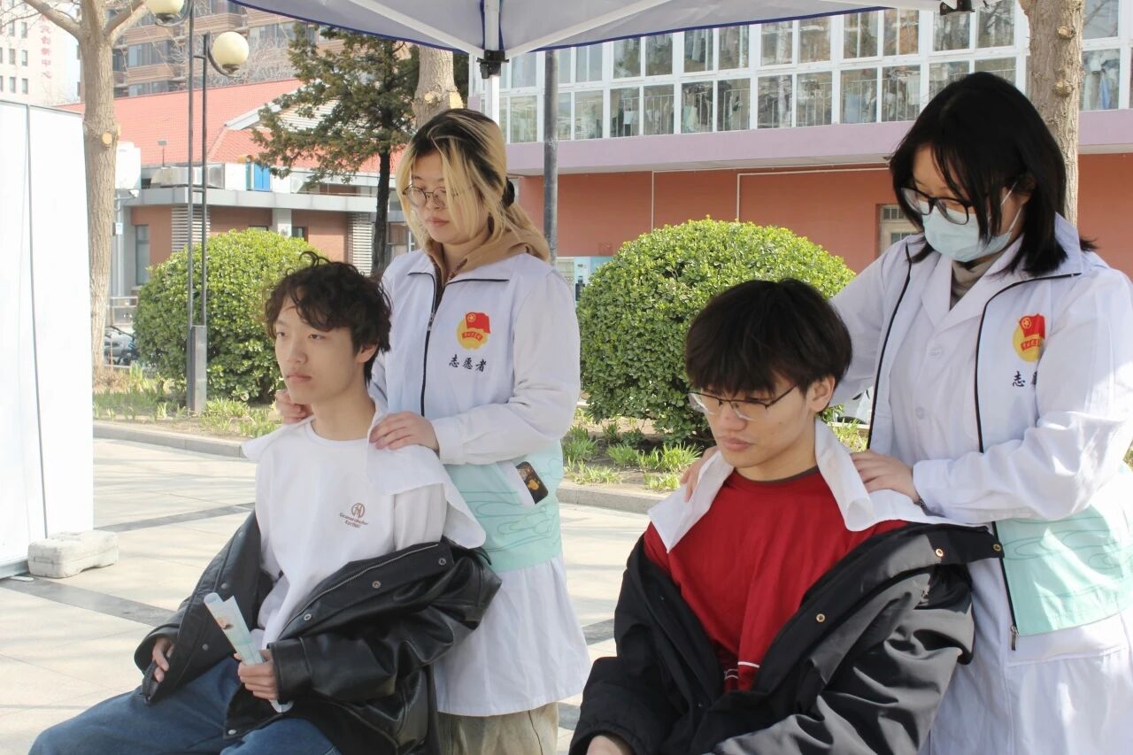 活动精心设置手诊、推拿、埋耳豆、脉诊、血压测量五大特色体验项目,全方位展现中医药文化的独特魅力与实用价值。北京中医药大学志愿者凭借扎实专业功底、严谨细致态度、温和亲和姿态,为师生提供精准诊疗与贴心服务,尽显医者素养与专业担当。结合春季养肝时令养生要点,志愿者同步开展健康科普宣讲,围绕作息调理、适度运动、饮食养护等方面,为师生普及科学养生知识,提供针对性中医健康指导,以实用化、专业化服务守护师生身心健康,让志愿服务兼具实用性与人文温度。