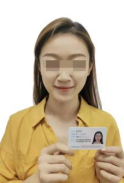 注意:要将持证的手臂和上半身整个拍进照片!要确保身份证上的所有信息可见、完整。