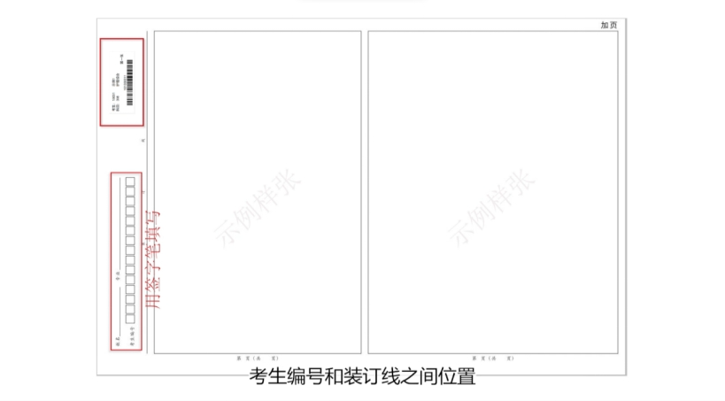 ③如果使用了加页答题纸,那么加页答题纸不用粘贴条形码,只须填写姓名、专业、考生编号,然后正常答题即可。