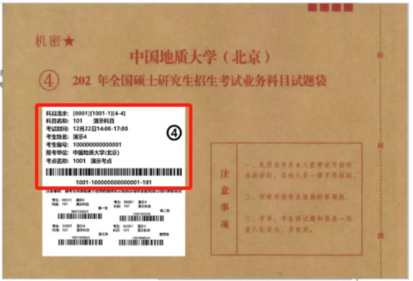 ②如果只有三张答题纸,没有第四张答题纸,那么请将第四章条形码保留在信封袋上。