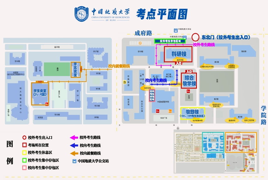 考试期间,考点附近的交通可能出现拥堵(中国地质大学(北京)考点禁止外部车辆进入),请提前了解路线,建议提前到达考点。