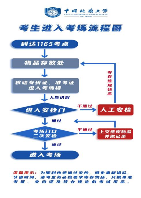 ①若安检出考生携带电子产品等违规物品,考生需自行返回存包处寄存再重新排队安检。为节省时间,请考生务必按要求寄存随身物品。